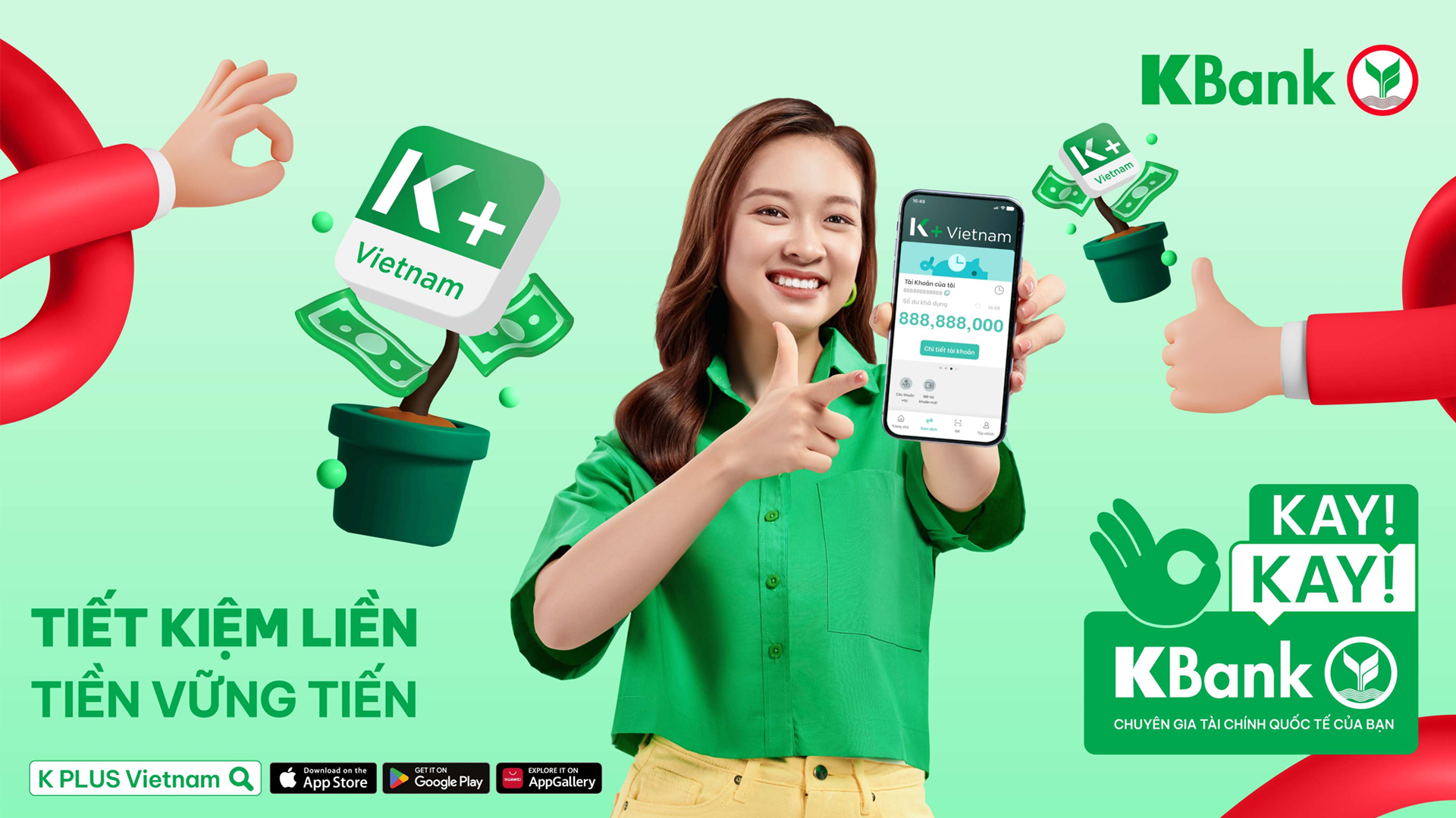Merge the simple word “Kay” with the Vietnamese pronunciation of the brand name (Kay-bank) to create the clever and easily-remembered phrase “Kay Kay KBank.” This interestingly phrase is consistently used in every creative assets, from key visuals, bumper ads series,… to state the brand’s role as a world financial expert that assists users in solving their financial problems with ease and confidence.